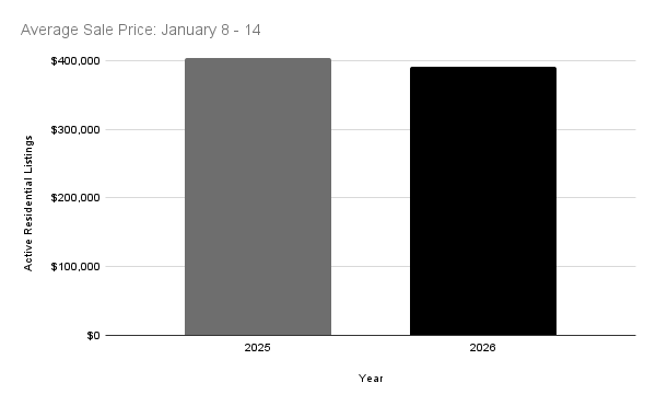 Saskatoon REALTORS® reported 38 residential sales during the second full week of January, down from 45 sales over the same period in 2025. While sales activity softened year over year, this decline aligns with typical seasonal patterns seen in early winter market conditions.