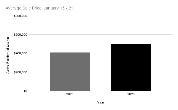 The average sale price rose to $502,189, compared to $410,105 during the same week in 2025. This increase reflects the composition of homes sold during the week, including several higher-value properties.